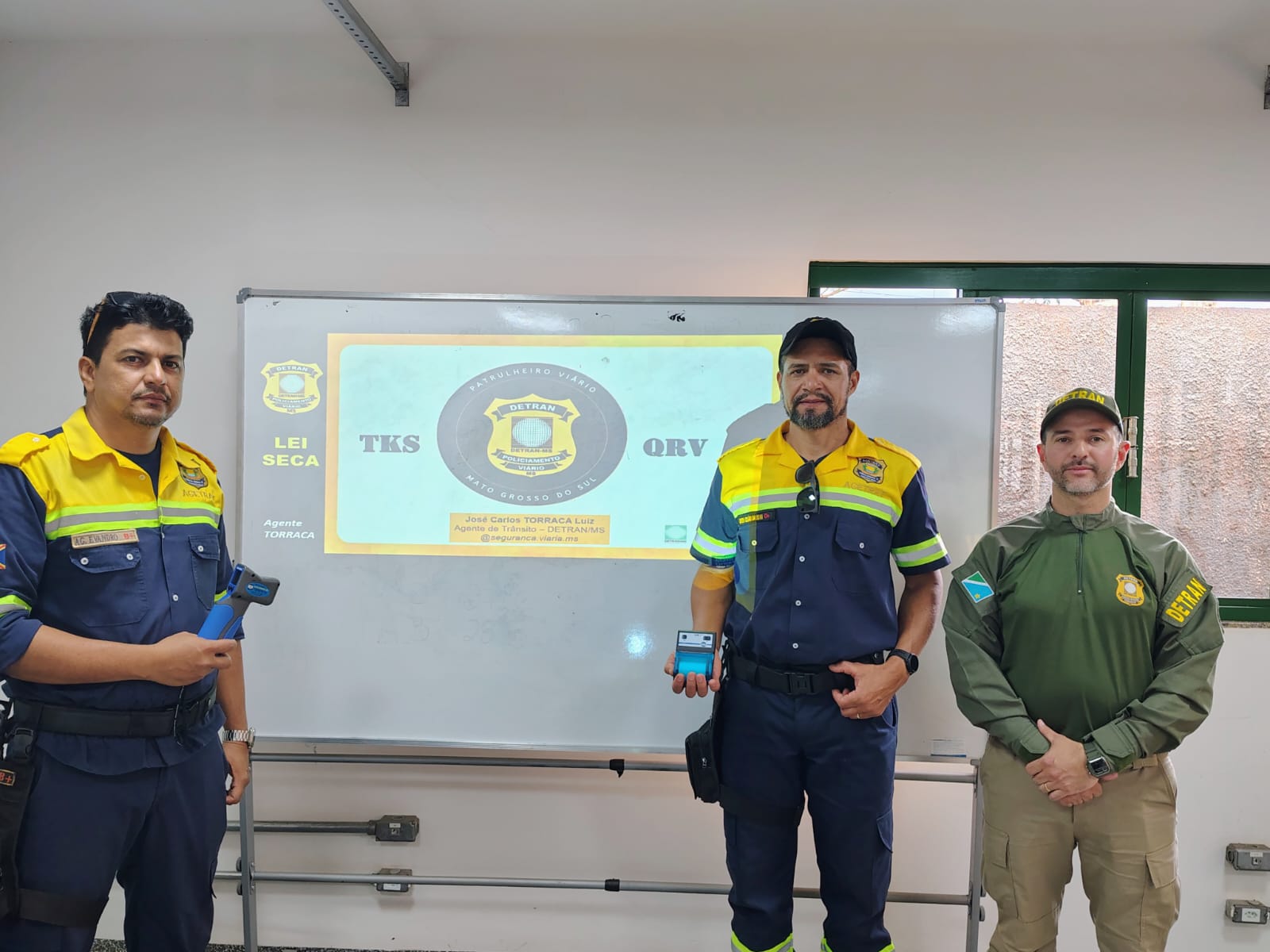 Os agentes de trânsito da AGETRAT participaram de um treinamento técnico ministrado pelo Departamento Estadual de Trânsito (DETRAN), Unidade Operacional de Dourados, com instrução conduzida pelo Agente de Trânsito Torraca. A capacitação teve como foco o uso adequado do novo equipamento e os procedimentos legais para a realização dos testes de alcoolemia.