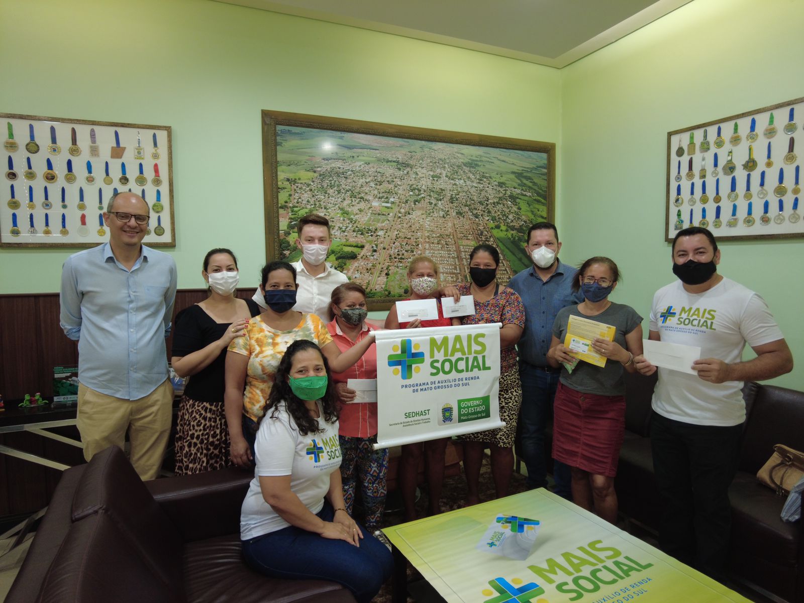 A entrega oficial foi realizada no gabinete do prefeito, Lucas Foroni e contou com a presença do Secretário de Estado de Direitos Humanos, Assistência Social e Trabalho, Adriano Chadid; Coordenador Regional, Paulo Henrique; Coordenador Regional; Coordenador Mais Social, Wagner; Técnica Social, Adína; secretária de Assistência Social, Lívia Dias e as beneficiarias Adriana, Erisvalda, Edivânia, Noemi e Maria.