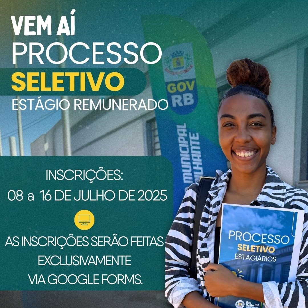 O Governo Municipal de Rio Brilhante abriu, nesta segunda-feira, 07, Processo Seletivo Simplificado para seleção e contratação de estagiários de nível médio, técnico e superior, para desempenho de funções junto ao Executivo Municipal.
