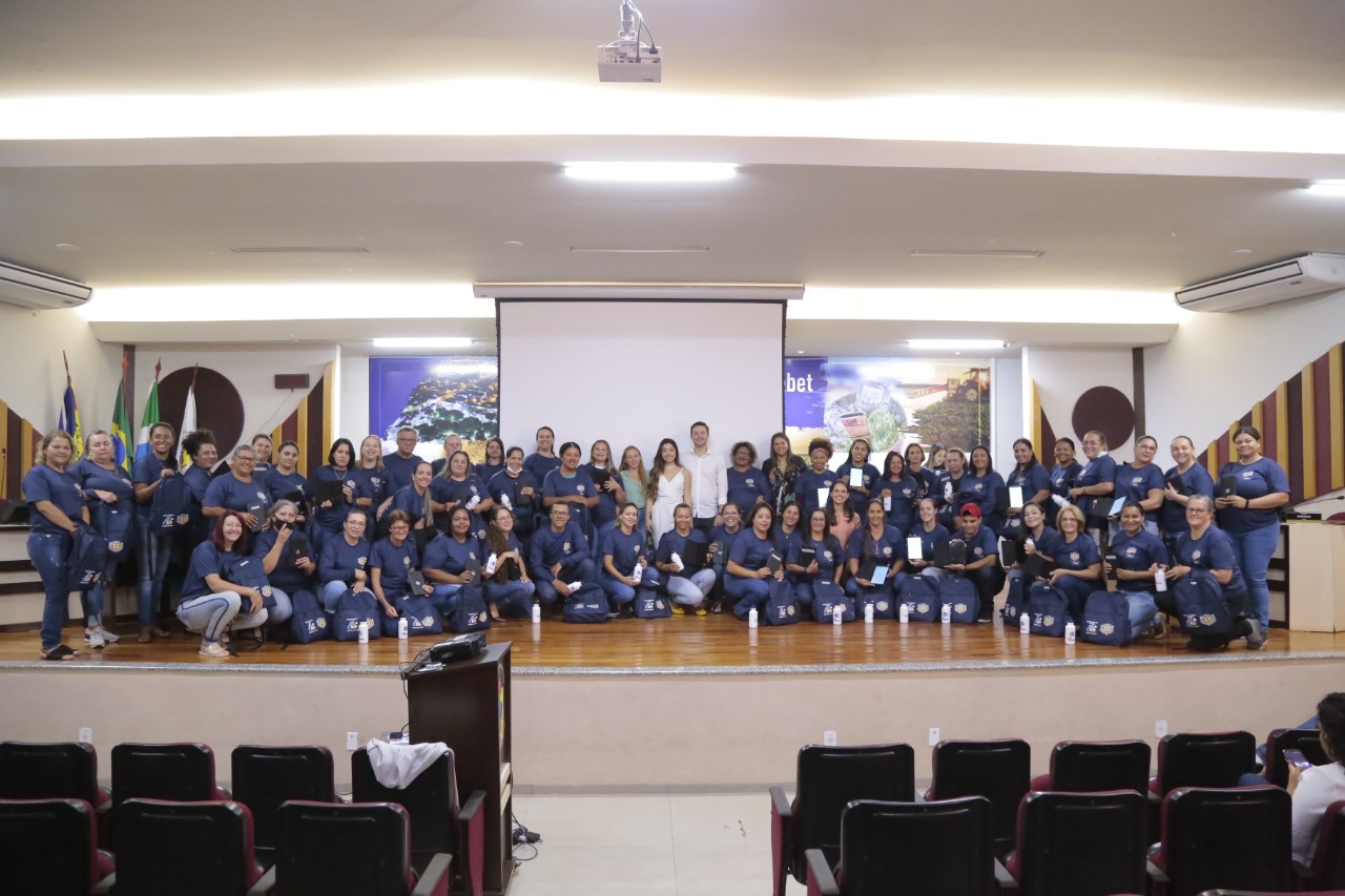 Ainda no evento foi realizado a entrega de 57 tablets com kits de trabalho contendo bolsa, fita métrica, garrada de água e 02 camisetas para auxiliar as atividades laborais dos Agentes Comunitários de Saúde.