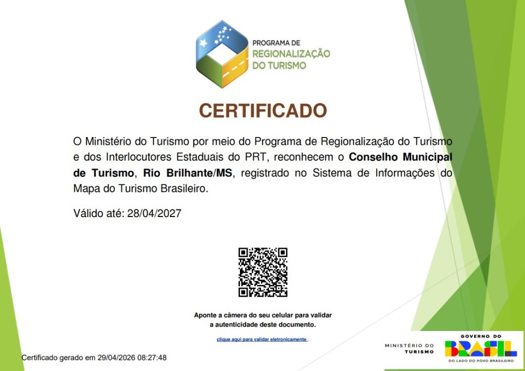 “O turismo é um vetor importante de desenvolvimento, capaz de gerar emprego, renda e novas oportunidades para a população. Com a inclusão no Mapa do Turismo Brasileiro, Rio Brilhante dá um passo significativo para consolidar seu potencial turístico, valorizar suas belezas naturais, cultura e tradições, e atrair cada vez mais visitantes”, pontuou.